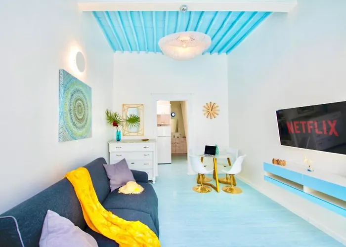 Gli ospiti possono raggiungere il centro di Mykonos Town in 5 minuti a piedi e visitare il Quartiere di Little Venice, situato a 700 metri. L'appartamento si trova inoltre in prossimità della Via Matoyianni. La Spiaggia Paranga è, inoltre, a 5 km.